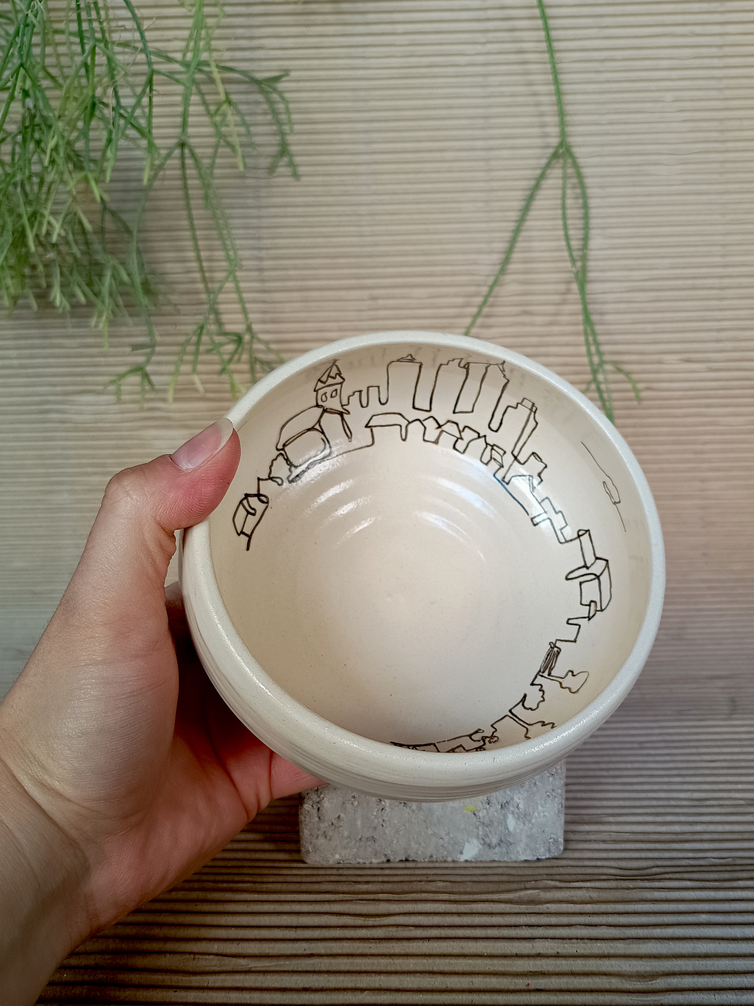 Esta colección de cuencos tienen todos el dibujo o plano de una ciudad. Estas ciudades son ficticias y no corresponden con ninguna ciudad en particular