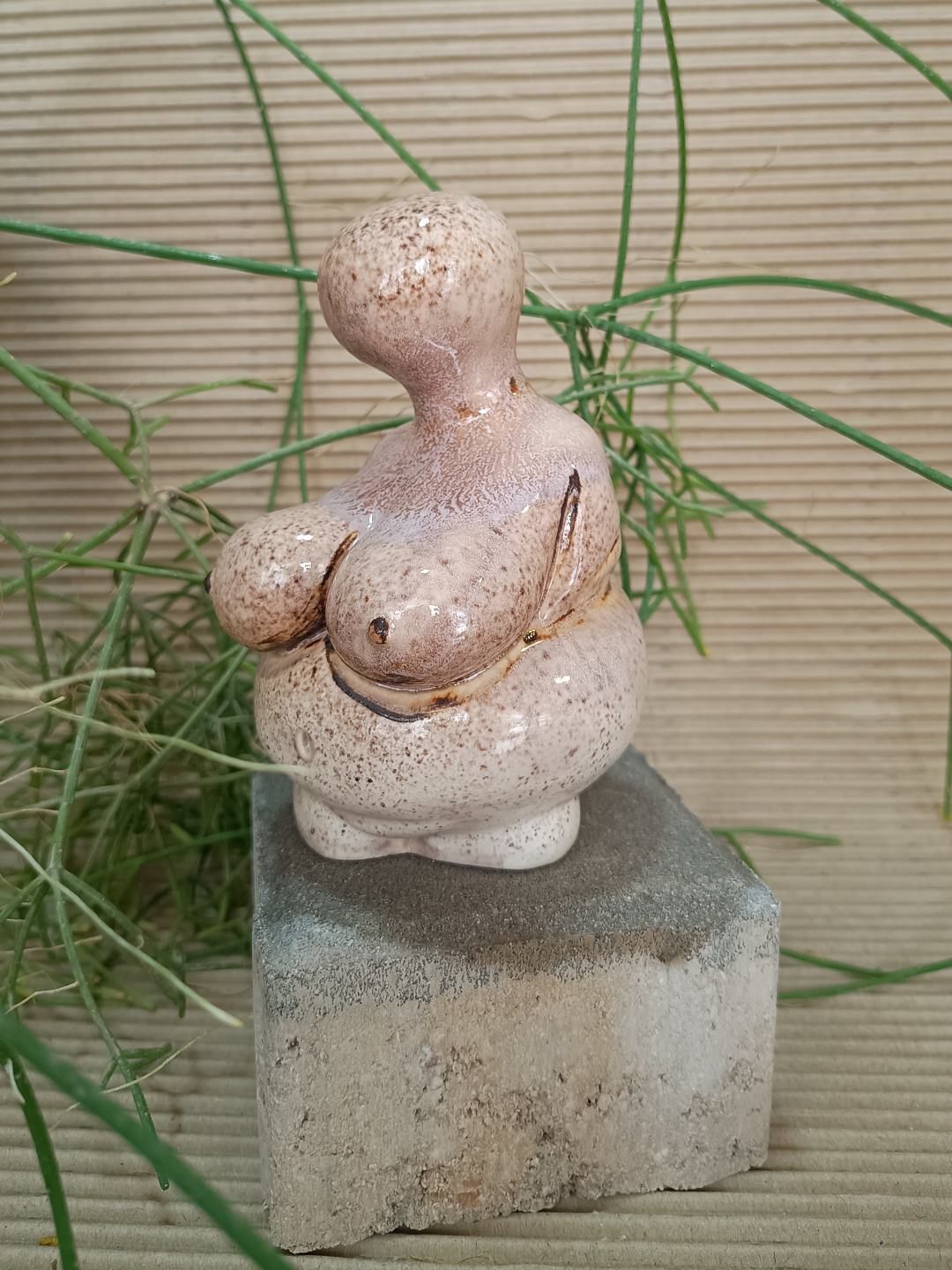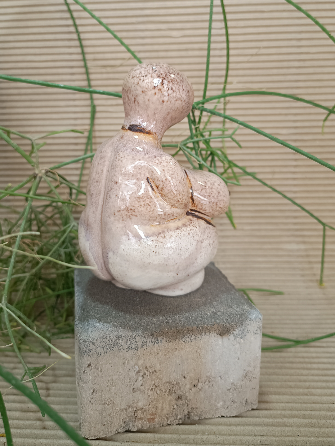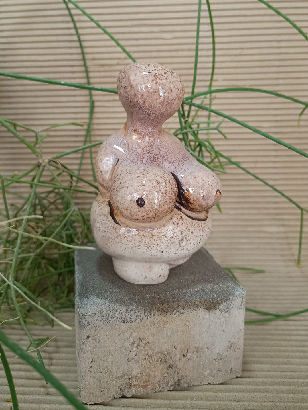 Pieza realizada con molde en loza blanca, 1050°C. Decorada con esmalte de manganeso