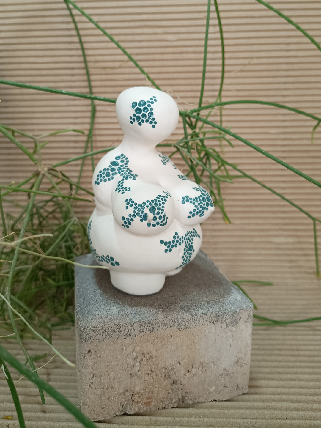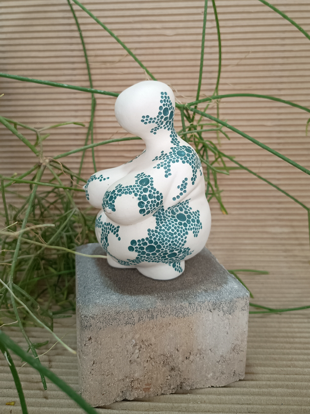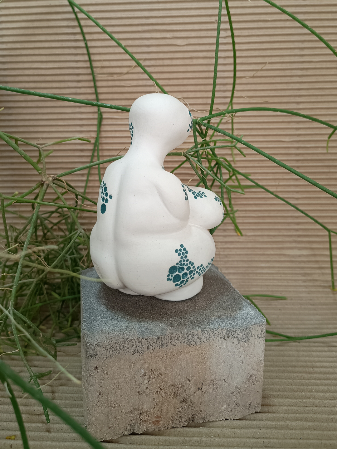 Pieza realizada con molde en porcelana, 1270°C. Tallada y decorada con esmalte en los surcos. Biscuit