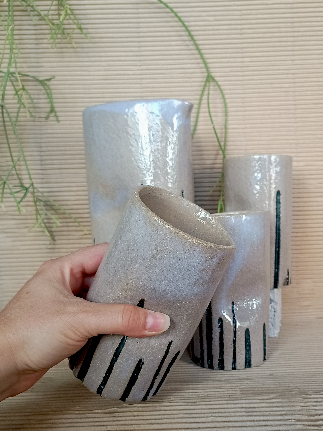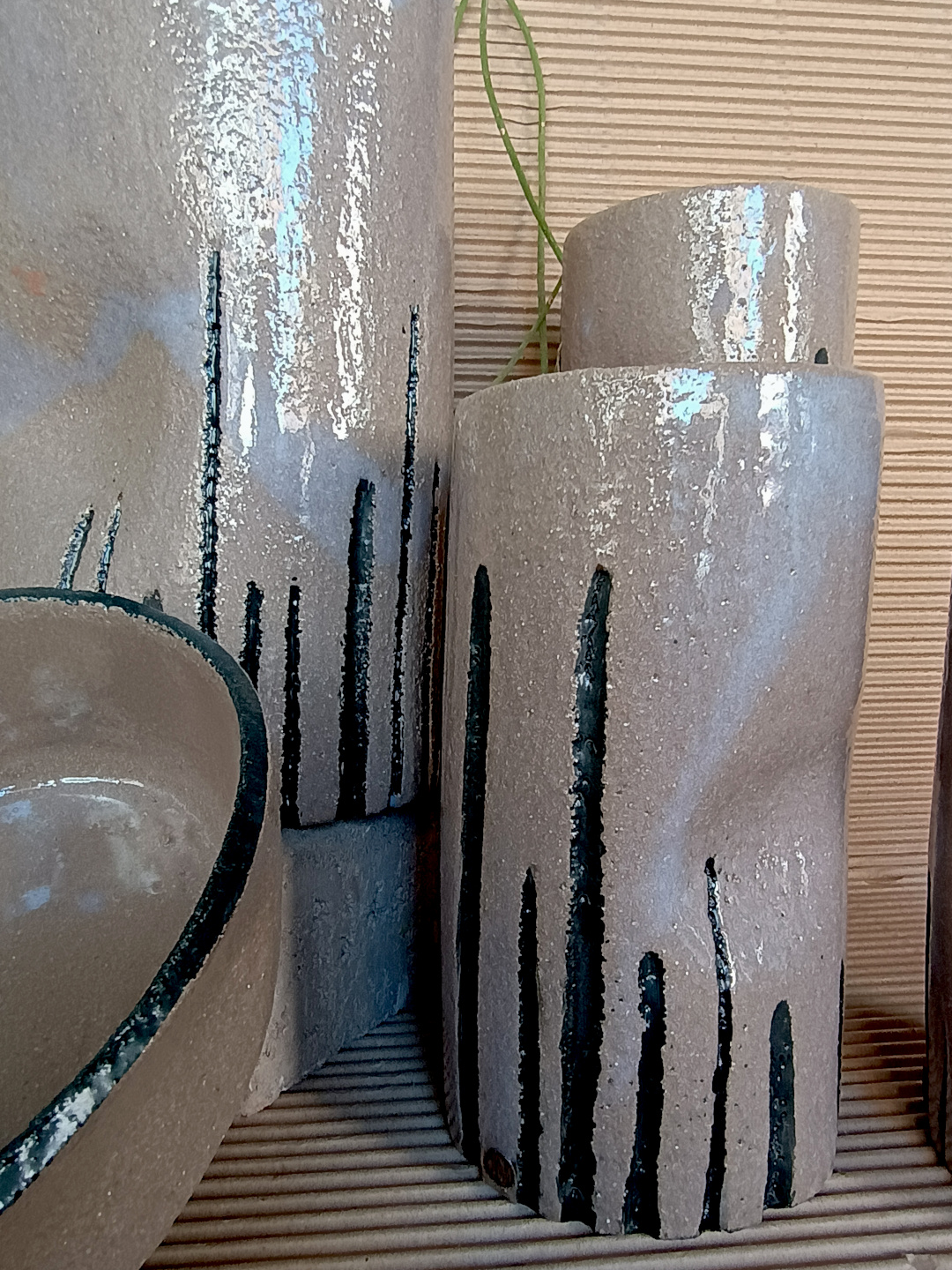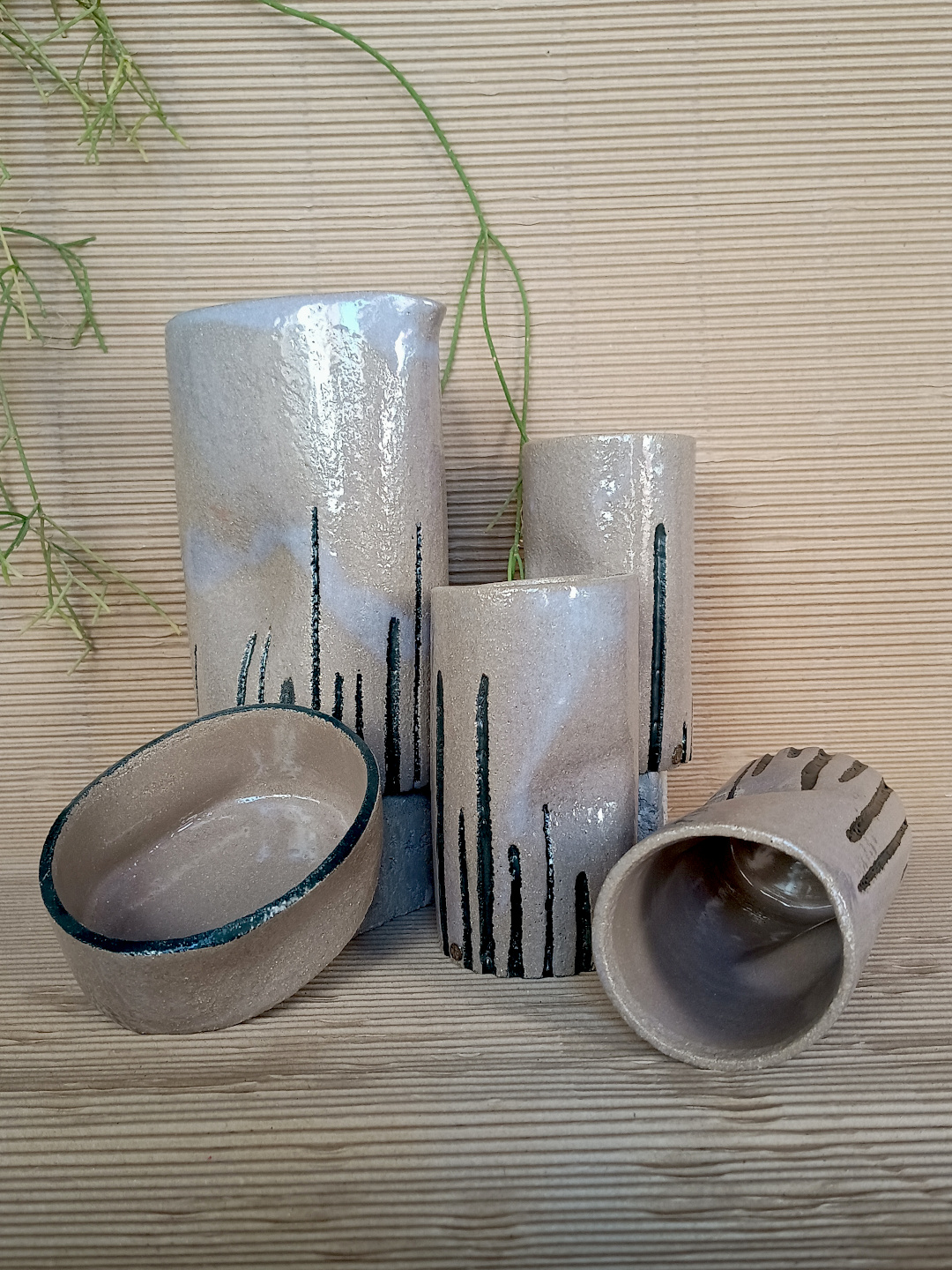 Piezas realizadas a mano en gres, 1270°C. Esmaltadas. Aptas para uso alimenticio, horno microondas y lavavajillas