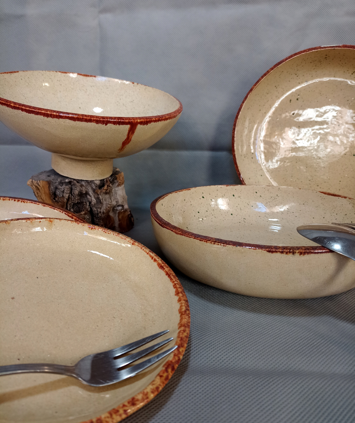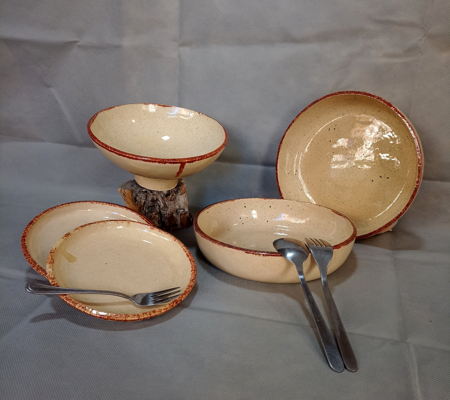 Piezas realizadas a mano en gres, 1270°C. Esmaltadas. Aptas para uso alimenticio, horno microondas y lavavajillas