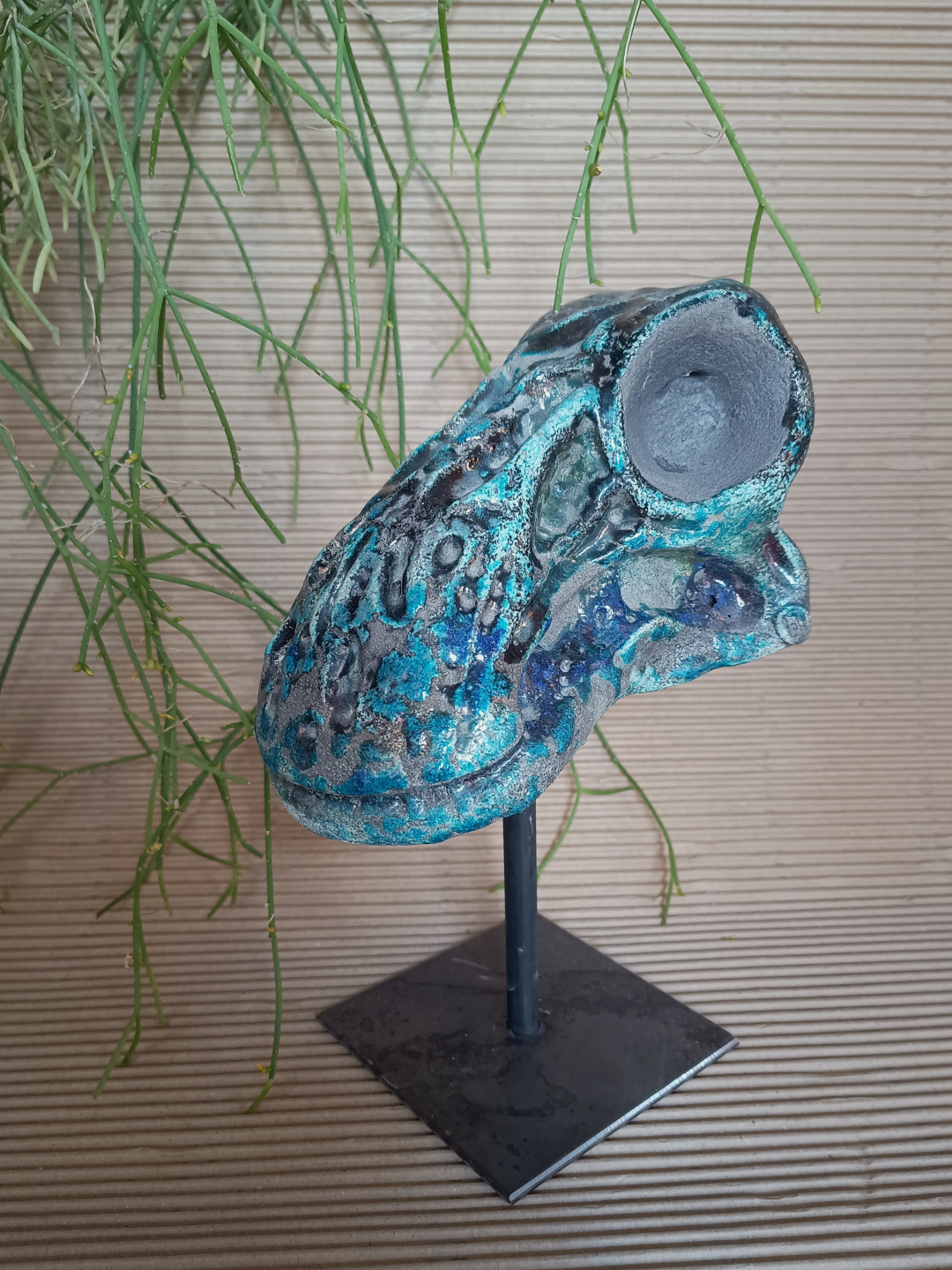 Inspirada en el cráneo del Nigersaurus taqueti. La única especie conocida del género extinto Nigersaurus de dinosaurio saurópodo rebaquisáurido que vivió a mediados del período Cretácico, hace aproximadamente 115 a 105 millones de años, entre las edades Aptiense y Albiense, en lo que es hoy África