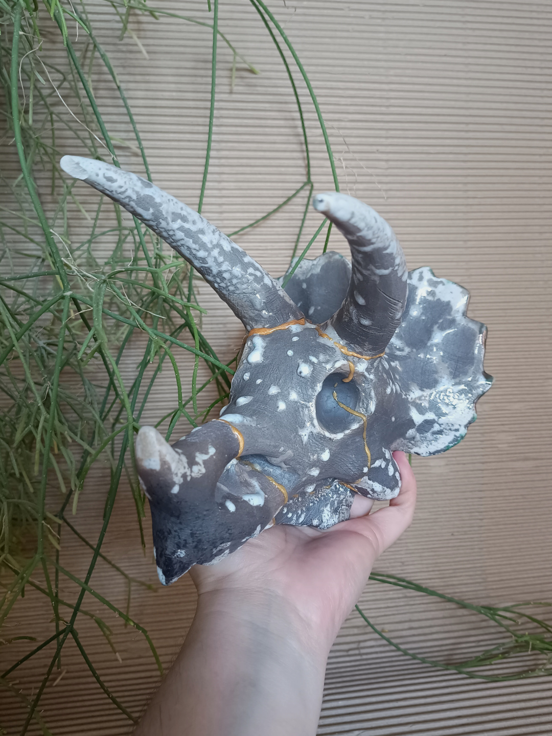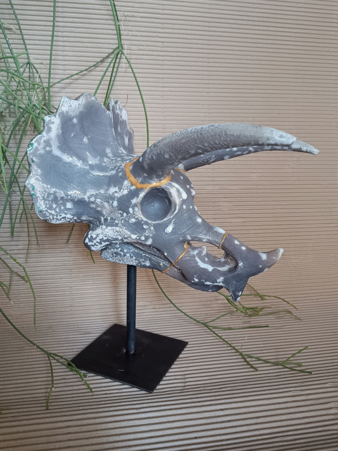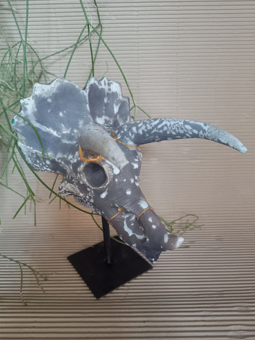 Inspirada en el cráneo del Triceratops. Un género con dos especies conocidas de dinosaurios ceratopsianos ceratópsidos, que vivieron a finales del período cretácico, hace aproximadamente entre 68 y 66 millones de años, durante el Maastrichtiense, en lo que hoy es Norteamérica