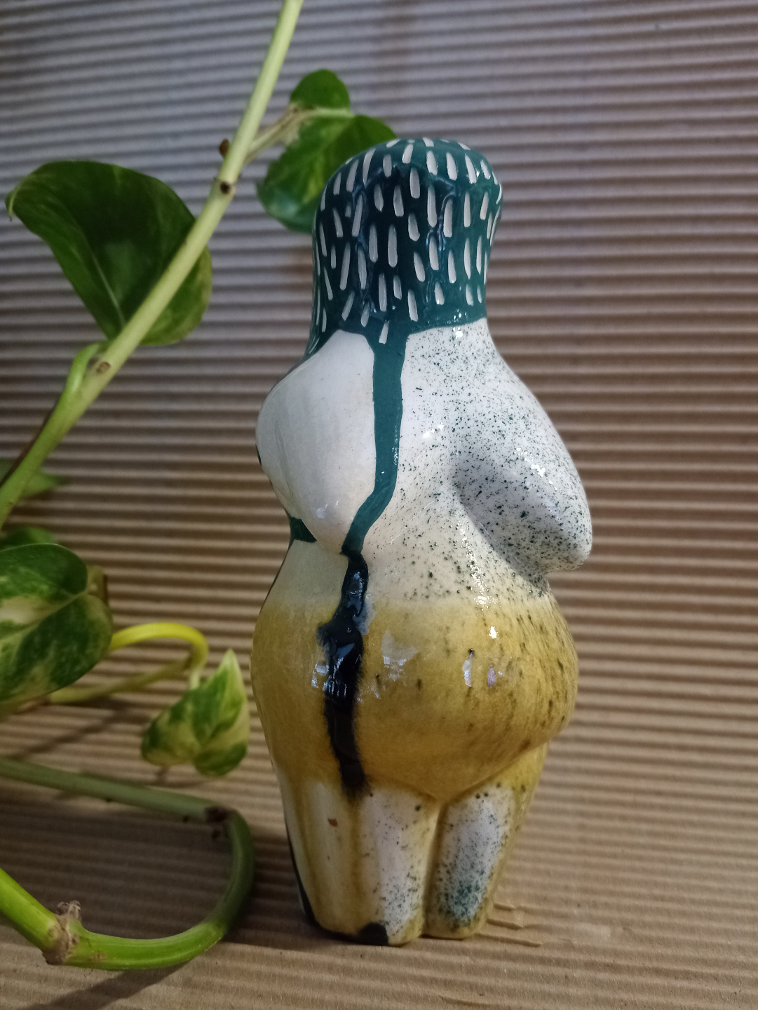 Pieza realizada con molde en loza blanca, 1050°C. Decorada con engobes y esmaltada