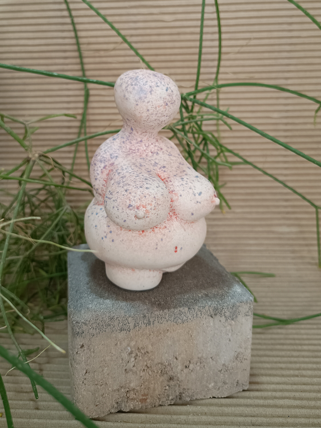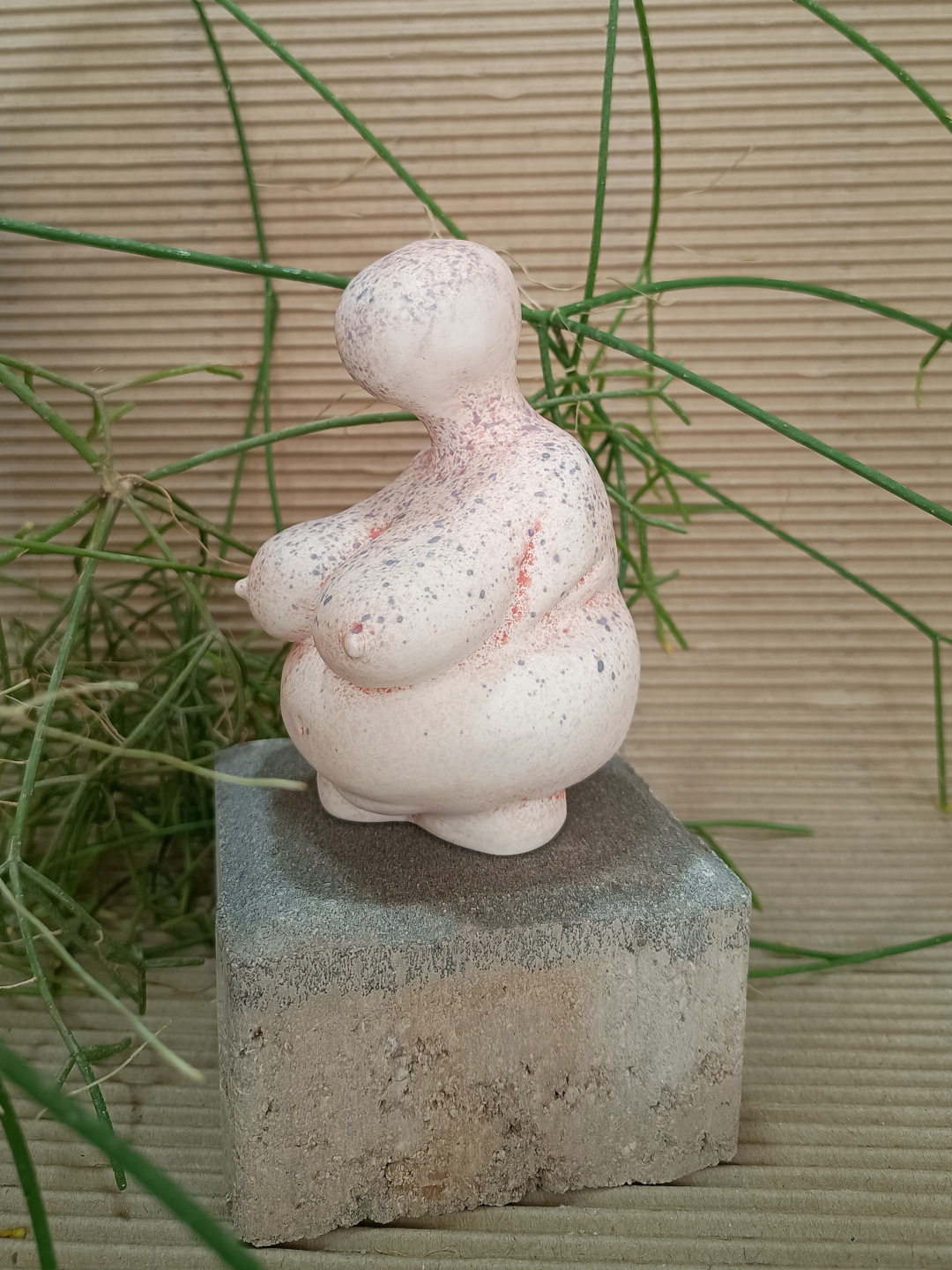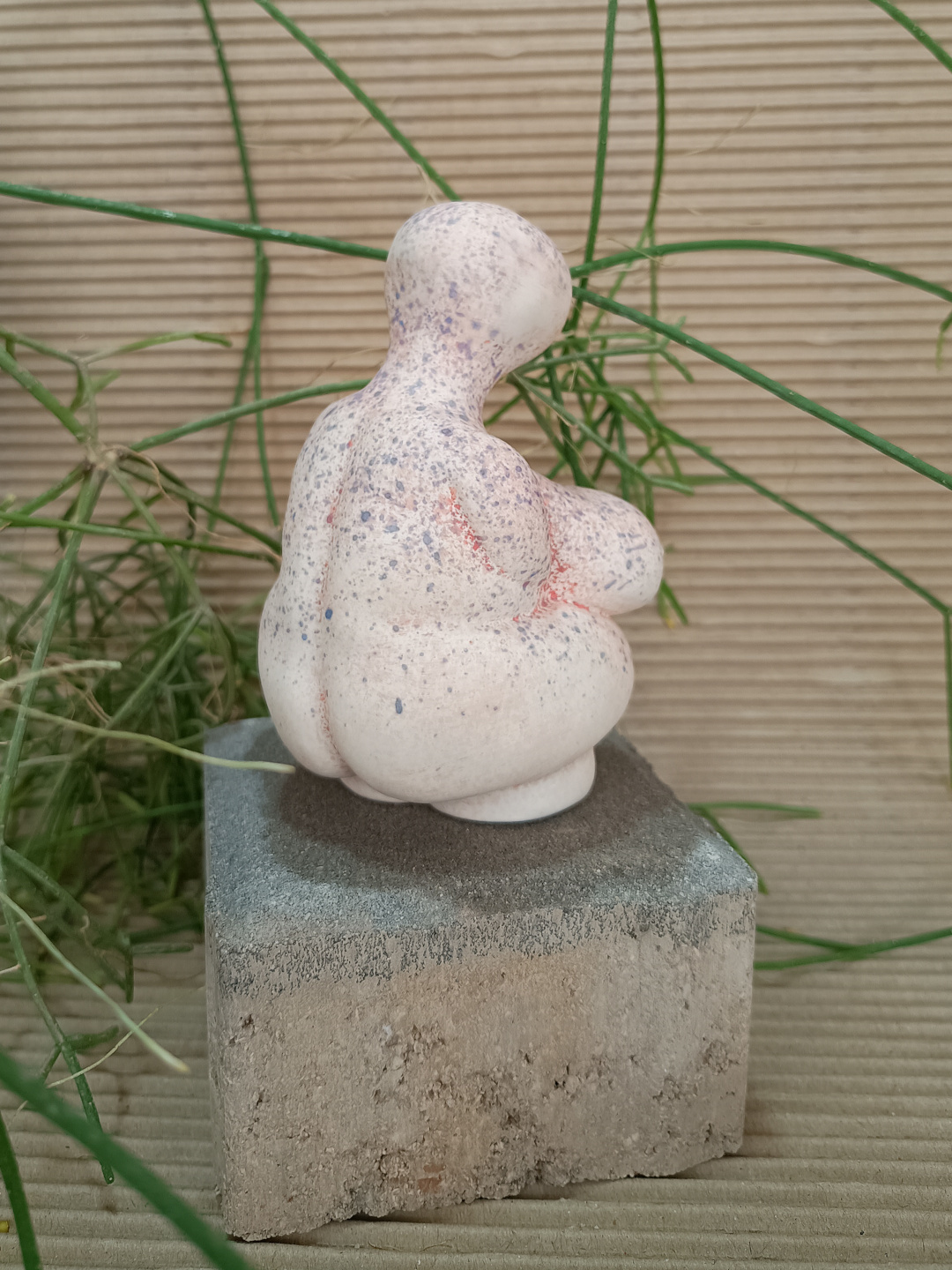 Pieza realizada con molde en porcelana, 1270°C. Decorada con pigmentos. Biscuit