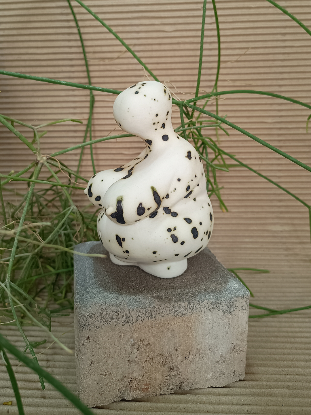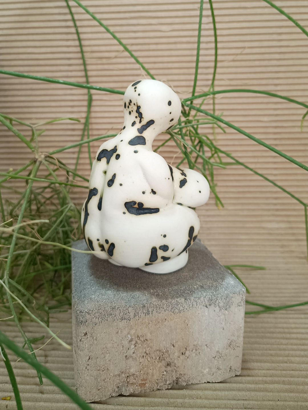 Pieza realizada con molde en porcelana, 1270°C. Decorada con cobre. Biscuit