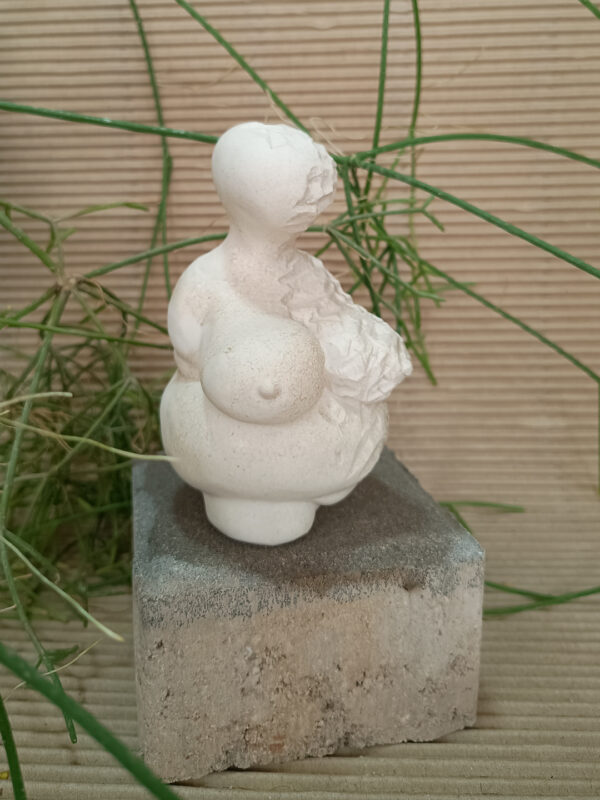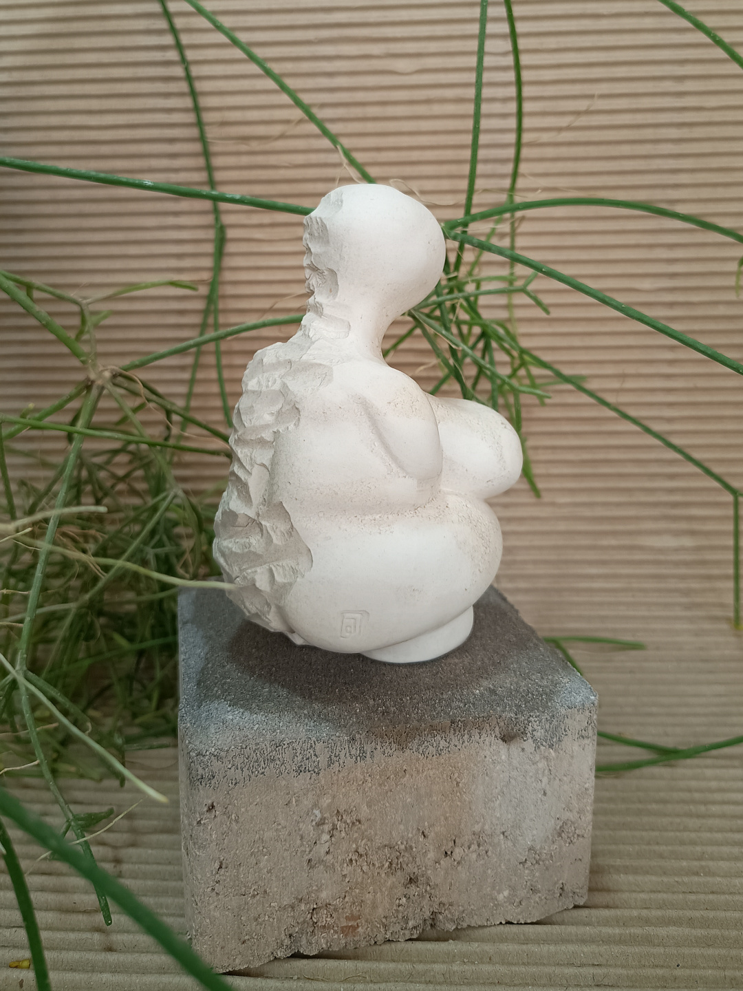 Pieza realizada con molde en porcelana, 1270°C. Tallada y ligeramente decorada. Biscuit
