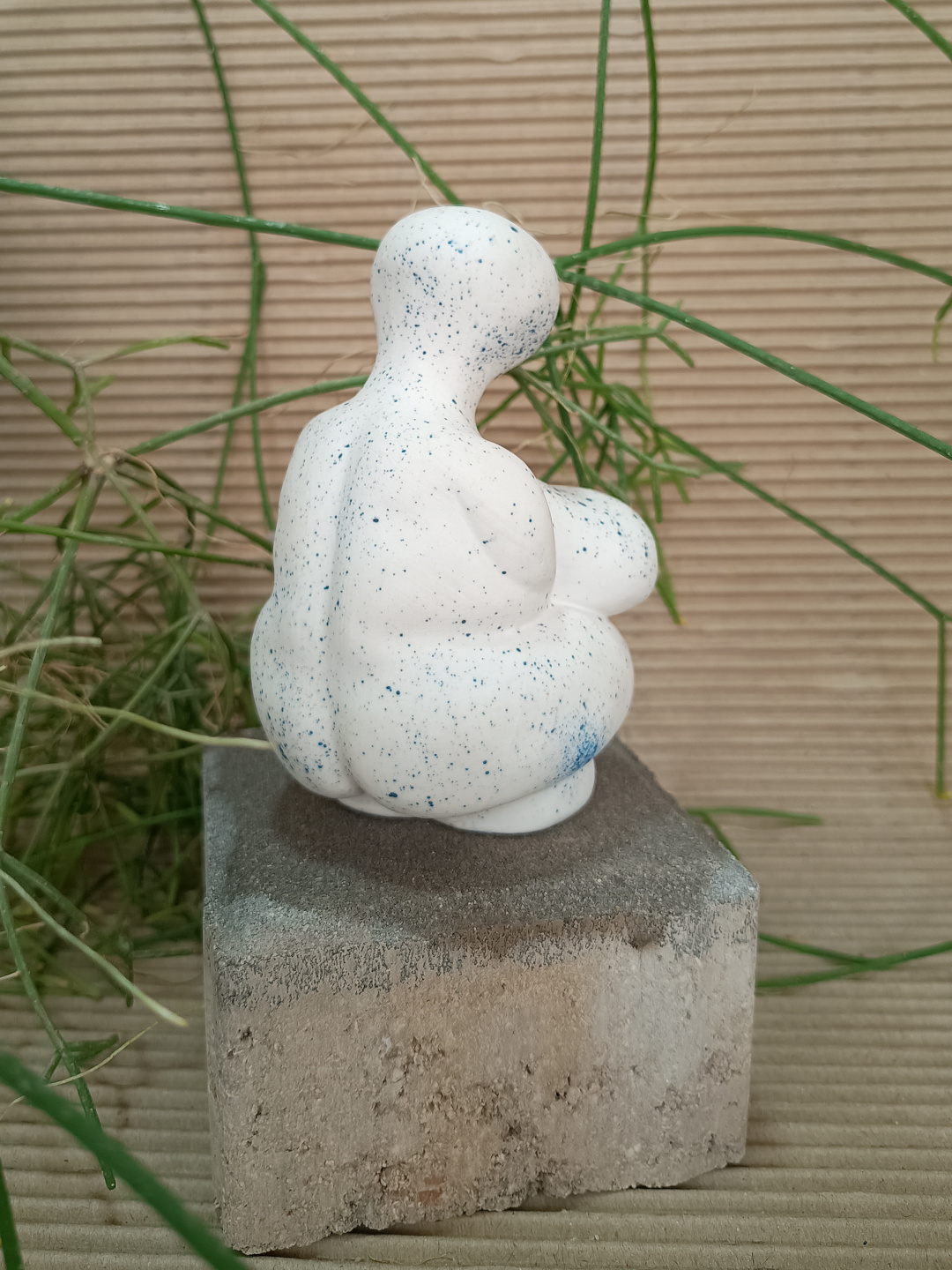 Pieza realizada con molde en porcelana, 1270°C. Decorada con cobalto. Biscuit